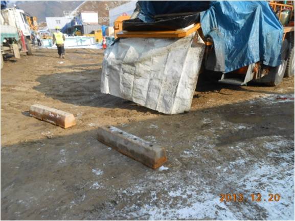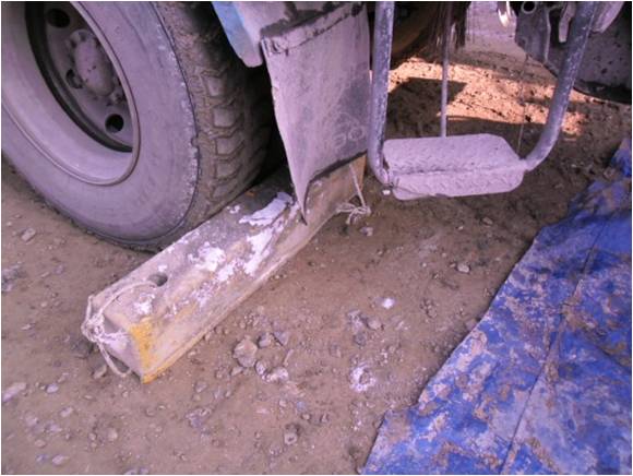 레미콘과 펌프카 사이 협착 방지용 스토퍼 설치상태 양호