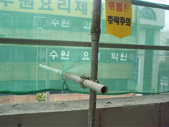 외부비계와 벽체 사이 낙하물방지망 설치2
