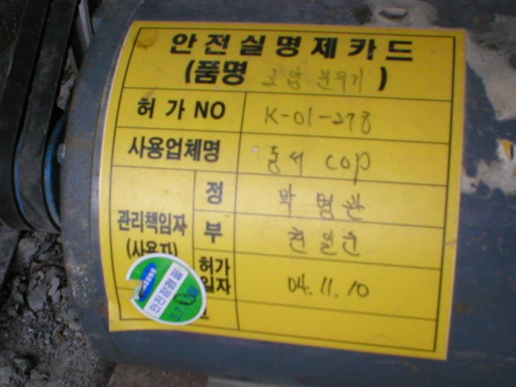 우수사진 : 현장반입 장비 안전실명제 카드
