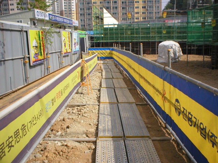 현장 입구에 근로자 보행통로를 설치하였습니다.