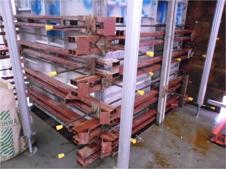기둥거푸집에 버팀조치 및 찔림방지를 하였습니다.