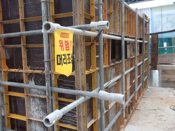 벽체 거푸집에 충돌방지조치를 하였습니다.