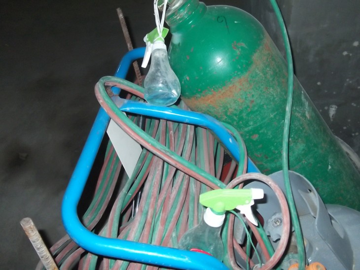 산소절단기에 분무기를 설치하여 누출여부를 수시로 확인합니다.