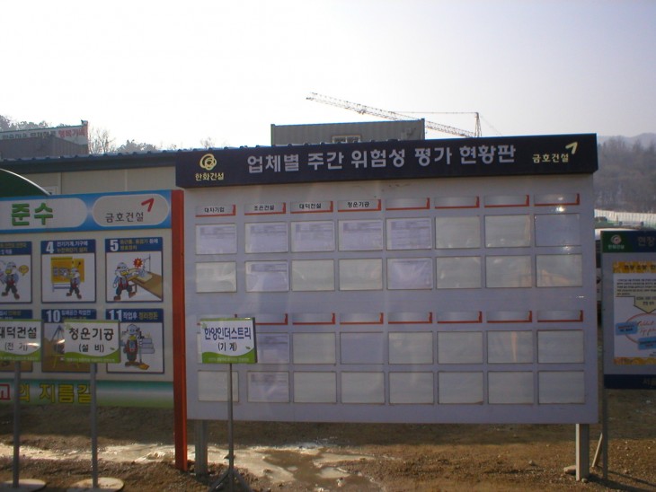 업체별 주간 위험성평가 현황판을 설치하였습니다.