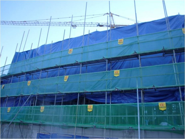 외부비계의 추락방지 시설들이 양호하게 설치되었습니다.