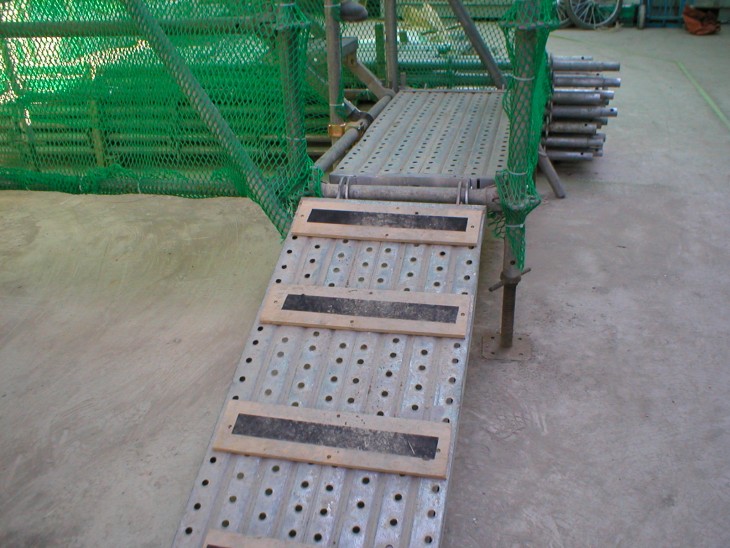 워킹타워 하부에 연결통로(가설경사로)를 설치하였습니다.