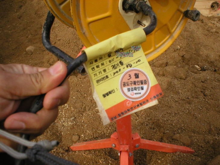 전동공구에 점검필증을 부착하였습니다.