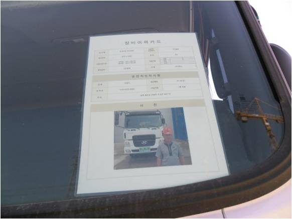 레미콘믹스트럭에 이력카드를 설치하였습니다.