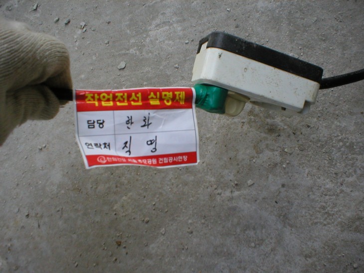 반입 시 확인한 가설전선에 실명제 표지를 부착하였습니다.