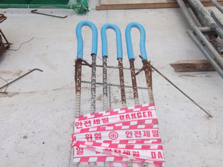 철골 기둥부위에 여러 방호조치를 하였습니다.