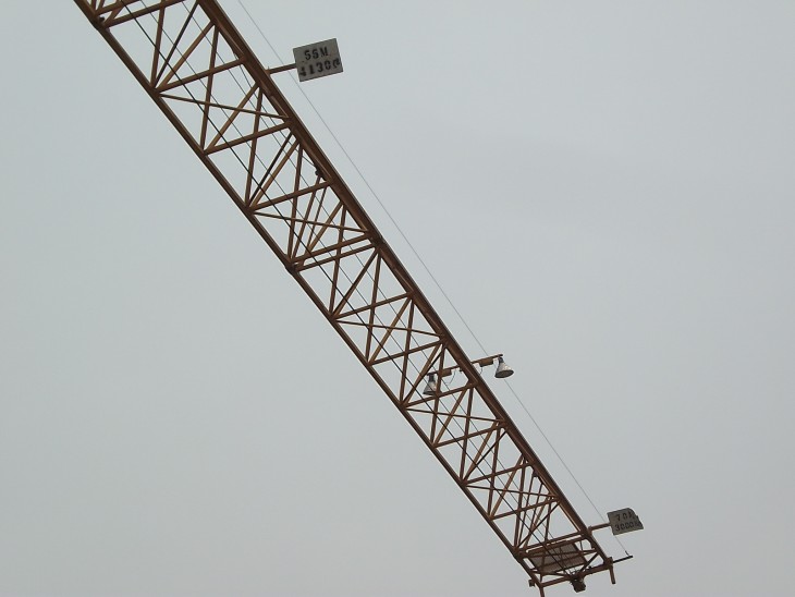 타워크레인 지브(JIB)에 정격하중을 안내표지를 설치하였습니다.