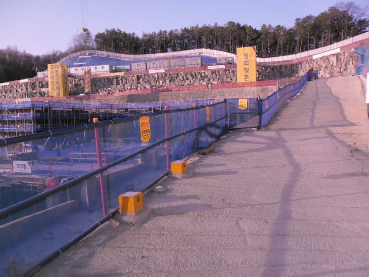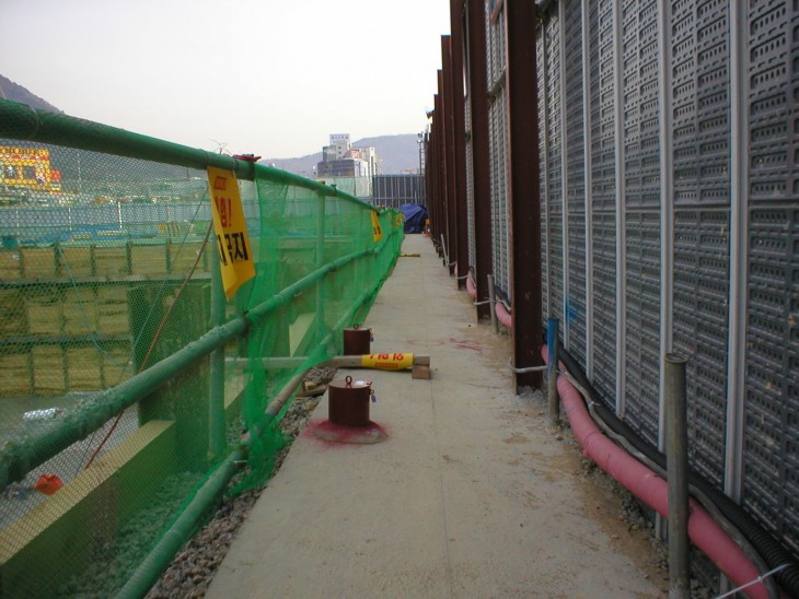 흙막이 상부에 안전난간대 등을 설치하였습니다.