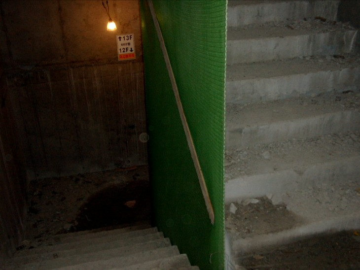 내부 계단실 마감 시 추락방망을 설치하였습니다.
