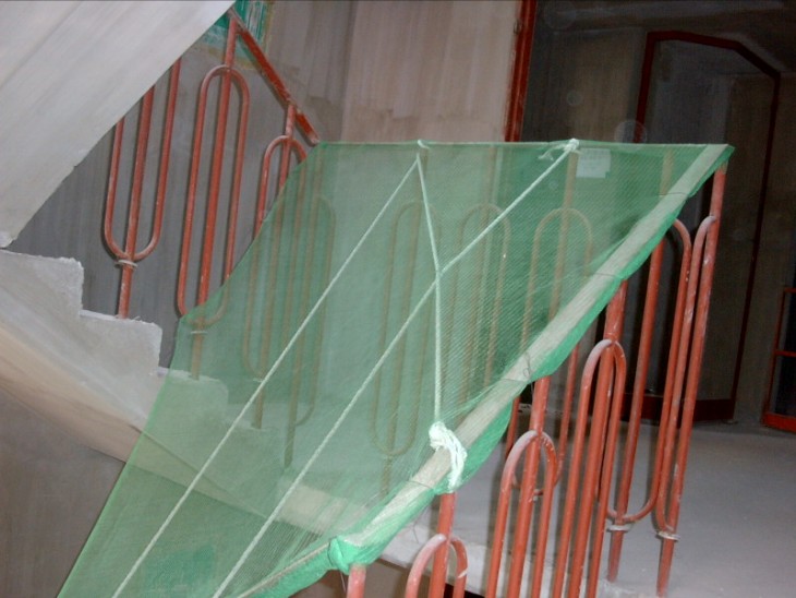 내부 계단실 마감 시 추락방망을 설치하였습니다.