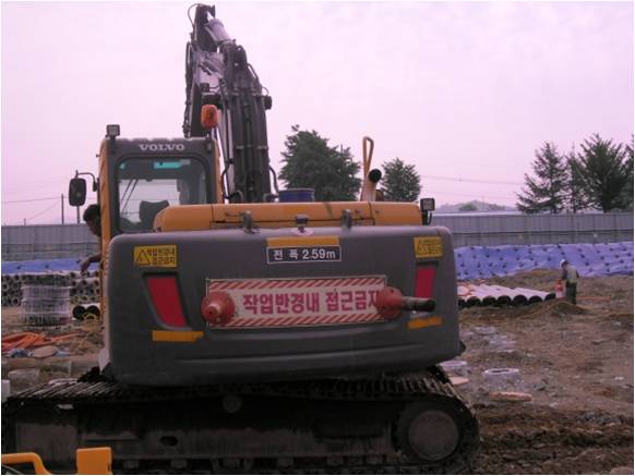 - 백호(Back hoe) 후방에 카메라와 협착방지봉을 부착하여 충돌 및 협착을 방지