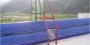 이동식(B/T)비계를 길게 설치하였고 그에 따른 안전시설(안전난간대, 가새, 하부 전도방지 등)을 하였습니다.