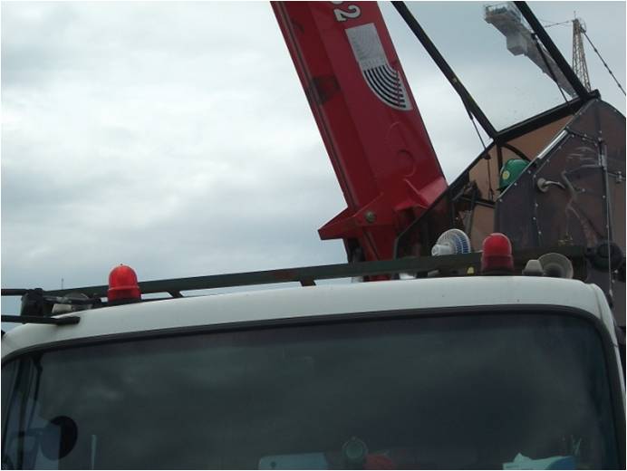카고크레인에 경광등을 설치하여 주의를 환기합니다.