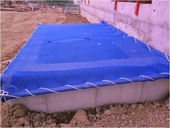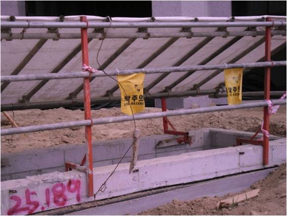 Dry Area의 개구부에 추락방지망 설치상태가 양호합니다.