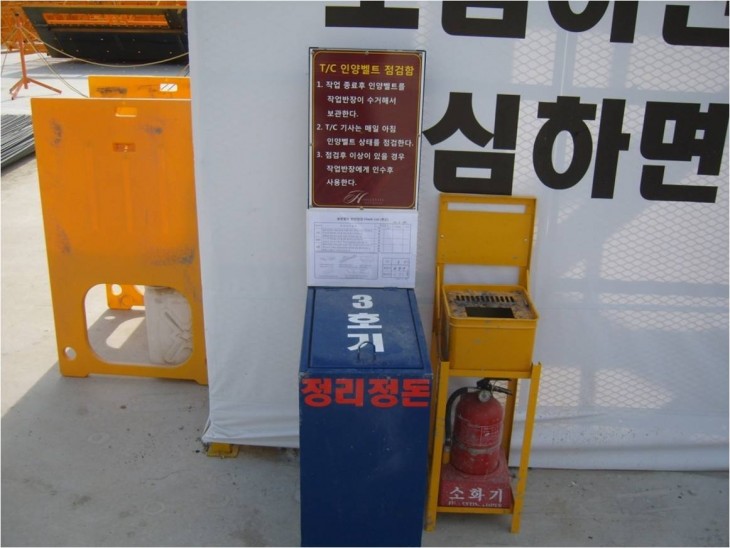 Tower Crane 인양벨트의 점검함 설치상태가 양호합니다.