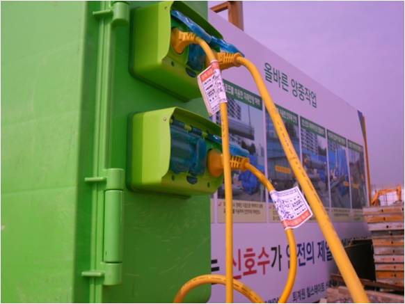 가설전선 사전 점검에 따른 확인필증을 부착하였습니다.