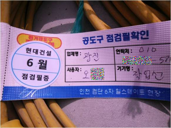 월 별 공동구 점검필 확인 등 부착상태 양호합니다.