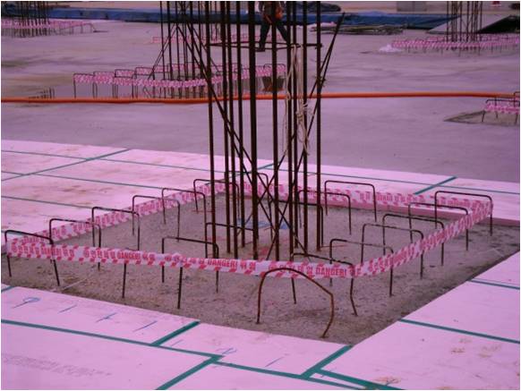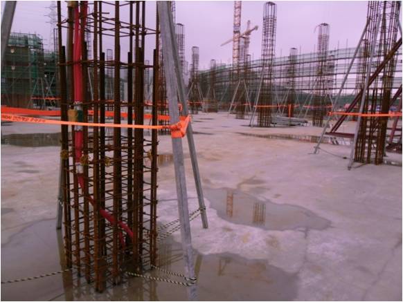 기둥 철근 부위 접근방지 조치상태 양호합니다.