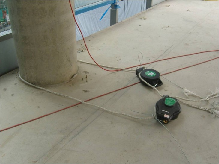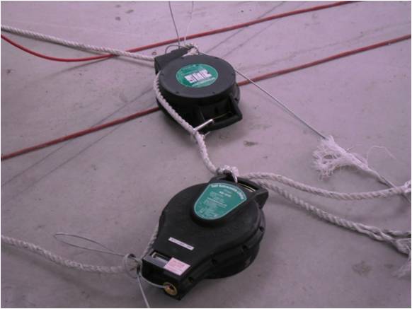 외부 작업 시 안전블럭 설치(근롲 추락방지) 및 사용상태 양호