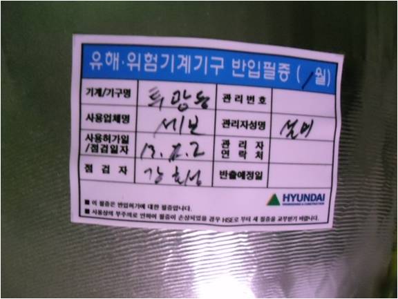 위험 기계·기구 반입필증