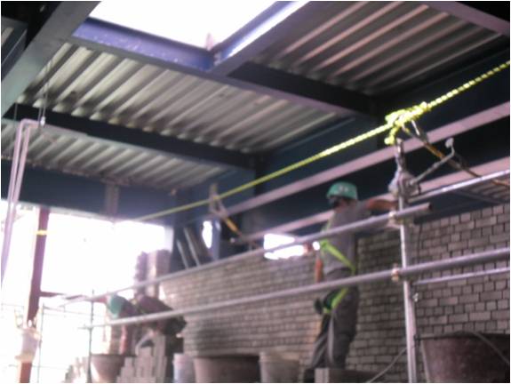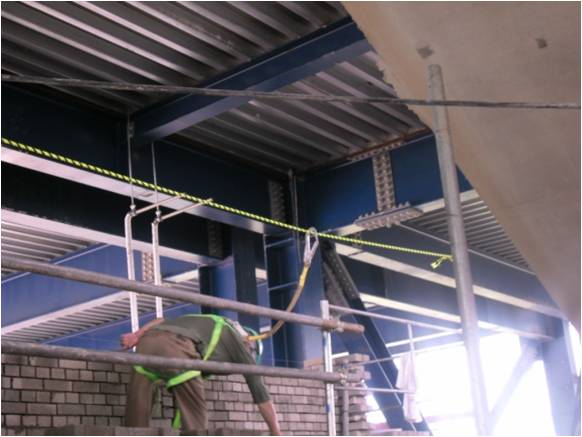 조적작업 시 이동식비계 상부 안전대 걸이시설 설치상태 양호