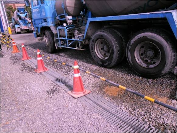 펌프카와 레미콘트럭 등 접근방지 조치상태 양호