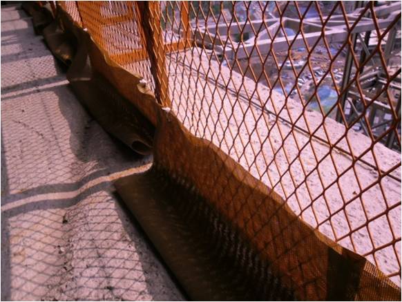 PC BEAM 등 조립부위 단부 안전난간대 및 수직방망 설치상태 양호