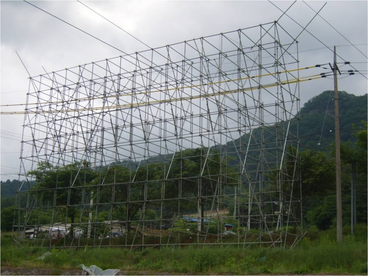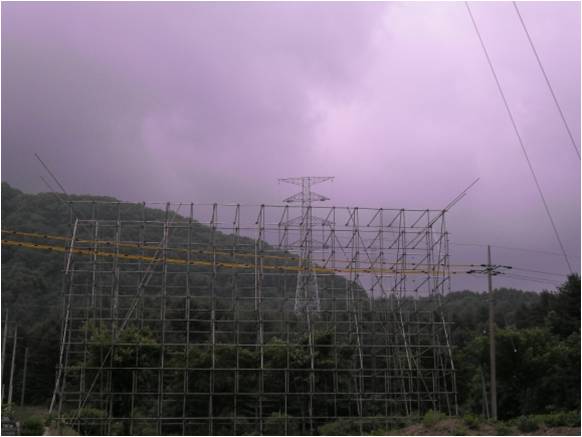 송전선로 철탑(T/L) 공사 방호발받침 설치상태 양호