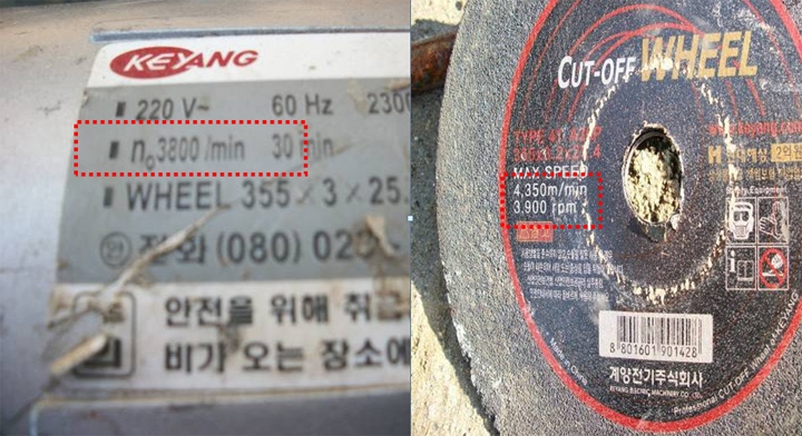 우수사진 : 고속절단기와 연마석 비교 페이지 정보 운영자 17-05-05 1,525 본문 고속절단기 전동모터 회전수와 연마석 회전수 사용범위 이내인지 사전검토* 상태 유지 : 고속절단기 전동모터 회전수 < 연마석 회전수 이전글 다음글 목록