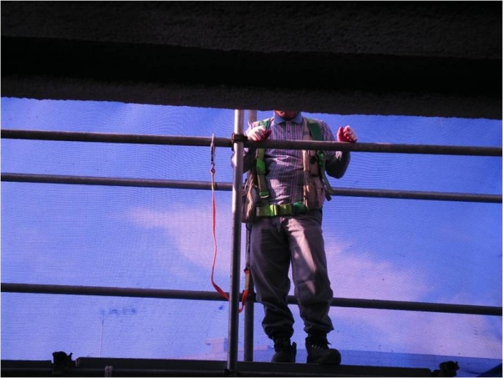 외부비계 관련 작업 시 안전대 거치상태 양호