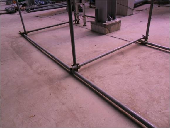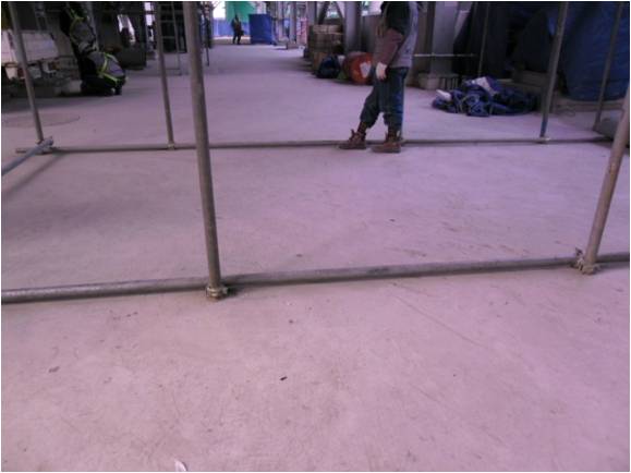 임시로 설치한 외부비계 하부 밑둥잡이 설치