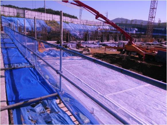 흙막이 띠장 부위 용접작업시 안전대_용접면 착용