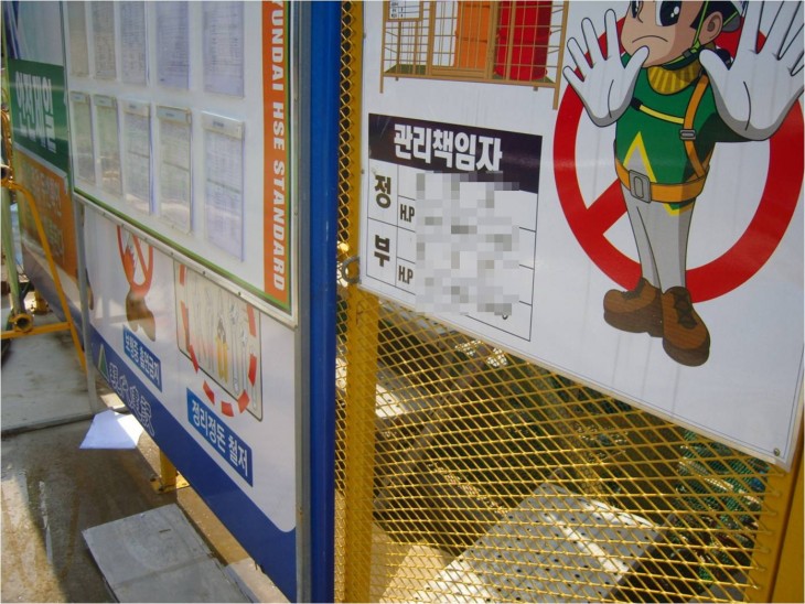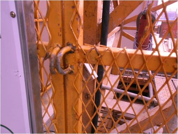 타워크레인 하부 방책 내부에서 시건 상태 양호