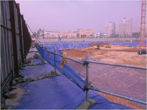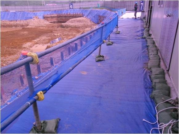 절토면 상부 안전난간대, 수직방망 등 설치상태 양호