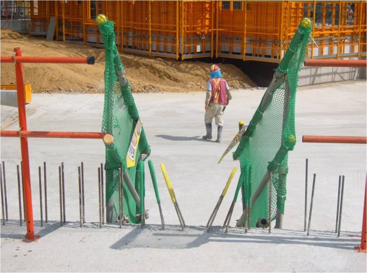 하부 거푸집 관련 작업 시 철근 찔림 방지 조치상태 양호