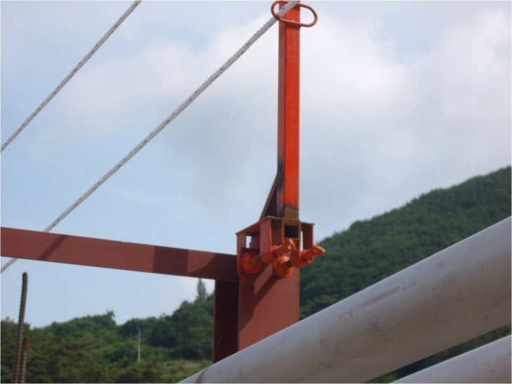 상부 작업 시 안전벨트 걸이대 하부 용도에 맞게 변형 고정 양호