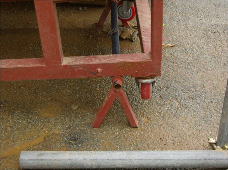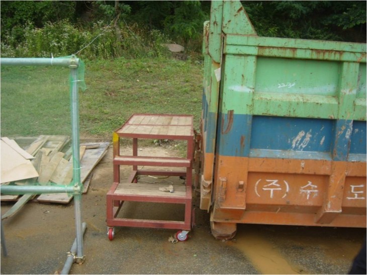 상부 작업 시 안전벨트 걸이대 하부 용도에 맞게 변형 고정 양호