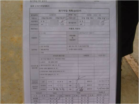 작업발판과 벽체 사이 낙하방지 쪽망 설치상태 양호