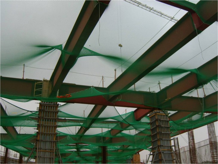 철골 작업에 따른 안전로프,추락방망 등 설치상태 양호