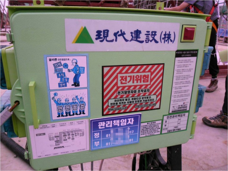 임시분전반 설치상태(시건,회로도,관리책임자 지정,접지등)양호