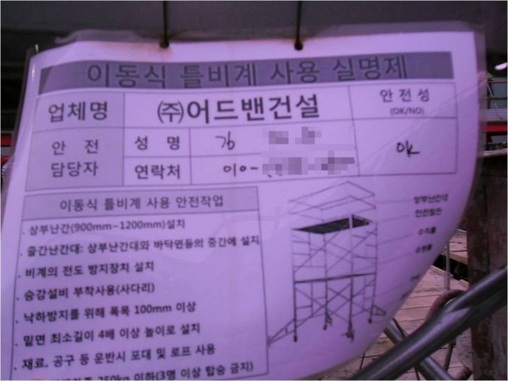 이동식틀비계 사용성 등 용이 : 출입문 설치
