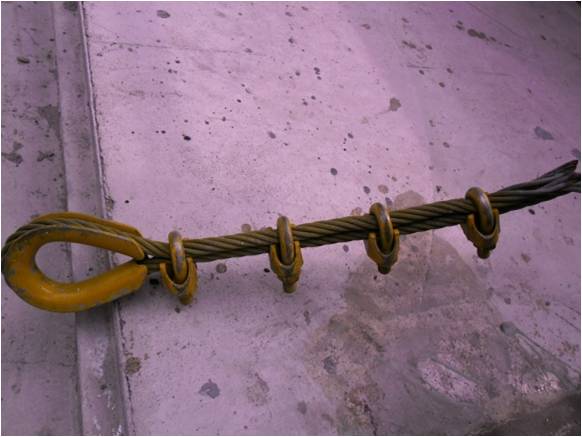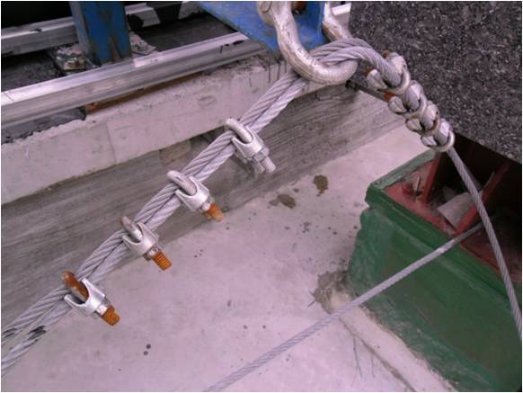 와이어로프 단말처리상태 양호 : 클립방향 및 개수 등