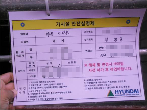 가시설 안전실명제 부착상태 양호