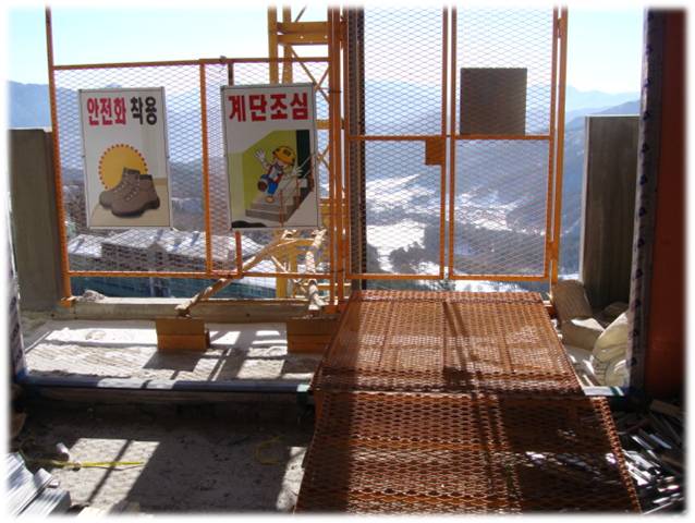 건설용 리프트 탑승구간 안전시설 및 안전표지판 설치