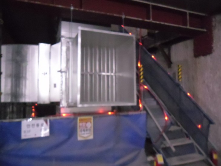 지하층에 대형 강제 환기 시스템을 설치하여 공기를 순환시킵니다.