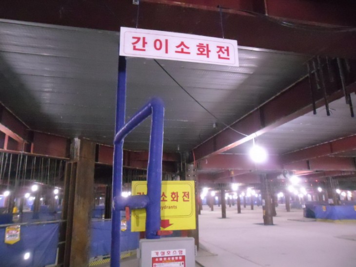시공 중인 지하주차장에 간이소화전을 설치하였습니다.